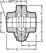 A | 1/2"-14 | 3/4"-14 | 1"-11-1/2 | 1-1/4"-11-1/2 | 2"-11-1/2 |